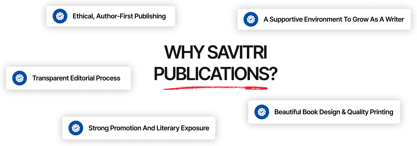 Rooted in ethical publishing and guided by a deep respect for creativity, Savitri Publications seeks to create a literary space where writers feel safe, heard, and valued. Our approach is thoughtful rather than transactional, focusing on nurturing voices, preserving authenticity, and ensuring that every published work carries integrity, depth, and purpose.